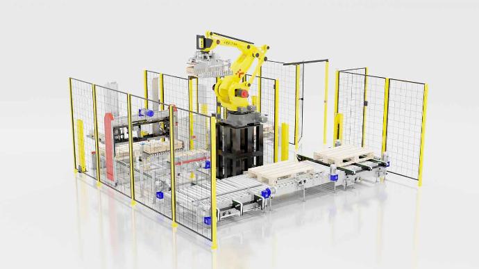 Paletizador cartesiano de 2 ejes de cajas con desapilador de pallets
